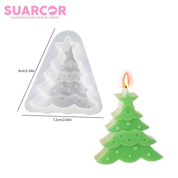 Crea adorables figuras navideñas con este molde de silicona con forma de árbol de Navidad decorado y estrella en la punta. Perfecto para hacer velas artesanales, jabones, resina o figuras decorativas con un toque festivo y detallado.